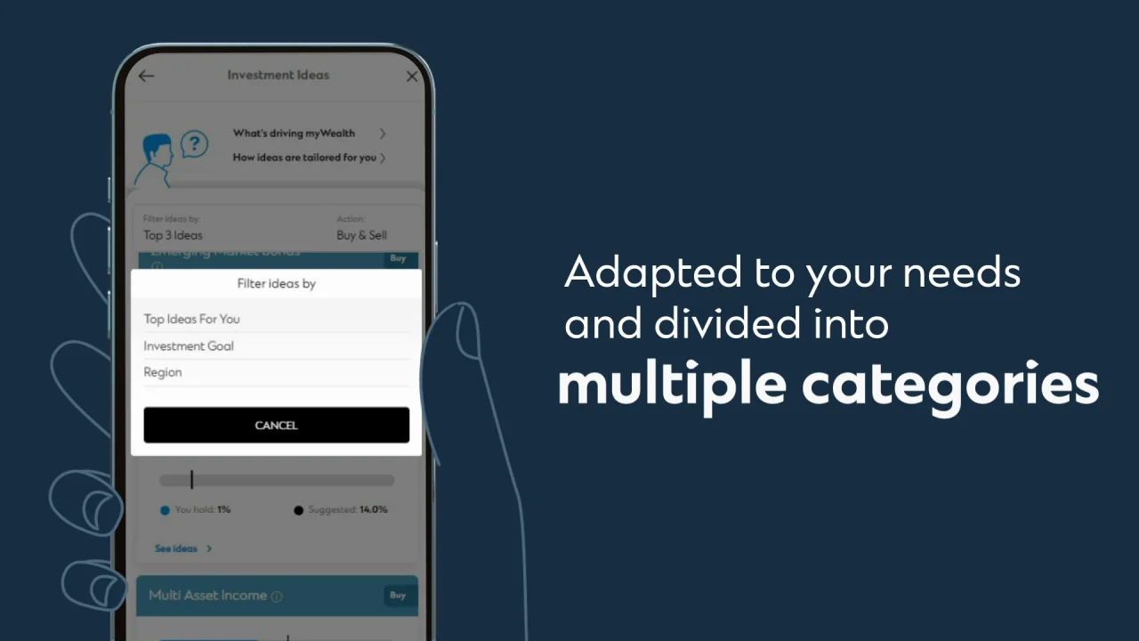 - Currently, myWealth only generates investment ideas on investment funds based on your current asset allocation and the model asset allocation under predefined rules.